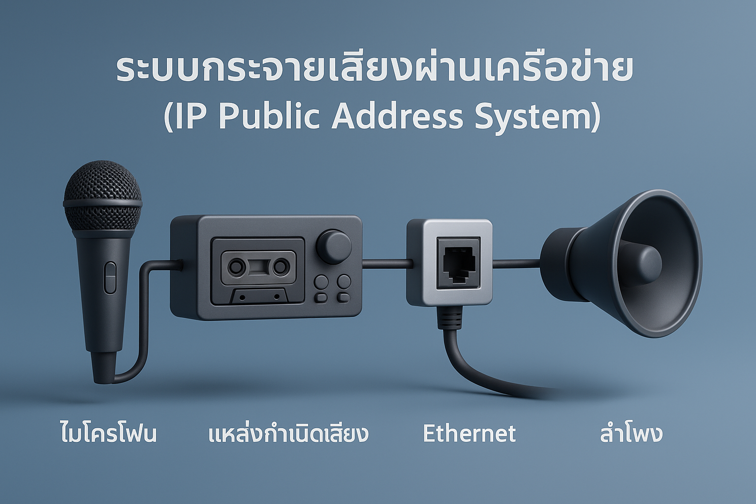 ระบบกระจายเสียงผ่านเครือข่าย หรือ IP Public Address System คือโซลูชันการสื่อสารด้วยเสียงที่ใช้เครือข่ายอินเทอร์เน็ต (LAN/WAN) เป็นสื่อกลางในการส่งสัญญาณเสียงไปยังลำโพงจำนวนมากทั่วพื้นที่ เปลี่ยนแนวทางการประกาศแบบเดิม ๆ ให้มีความยืดหยุ่น แม่นยำ และควบคุมได้จากศูนย์บัญชาการเดียว